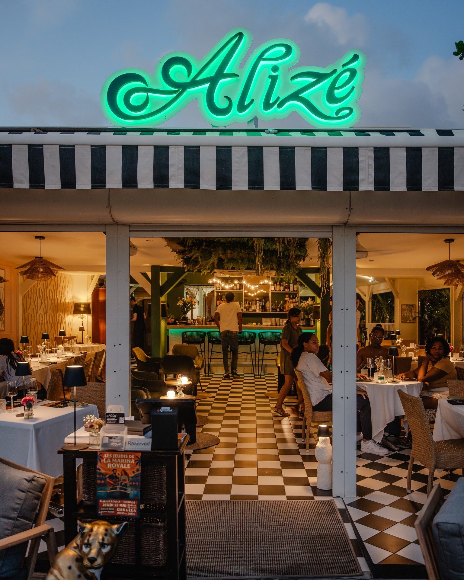 Restaurant and lounge serving an elegant dining and cocktail experience in a vibrant and comfortable atmosphere, waterside on the Marina Royal in the heart of Marigot.